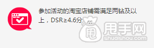 報名參加淘特萊斯的淘寶賣家們應該知道,報名淘特萊斯的要求中有一項是對店鋪DSR的要求: