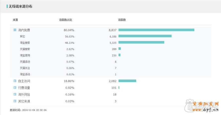 2015.2.5升級新增了原量子來源分析收費功能,PC端來源分布提供來源明細TOP100,針對淘寶搜索、天貓搜索、直通車,實時提供TOP100訪客的明細關(guān)鍵詞,其他細分來源的提供TOP100明細來源url,部分來源不支持細分。無線端來源分布暫不支持細分。
