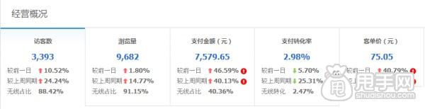 我們可以看到,此店與行業的差距還有很多,同時也意味著上升空間還很大,從這里我們可以清楚的知道我們哪些地方做的還不夠好,哪里不足,我們就根據自己的情況先彌補哪里,爭取各個數據指標都達到行業的均值,然后再想辦法超越行業的均值。