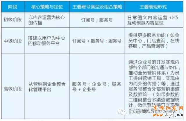 一、目前市場(chǎng)上主要的企業(yè)微信布局的不同階段及其特征: