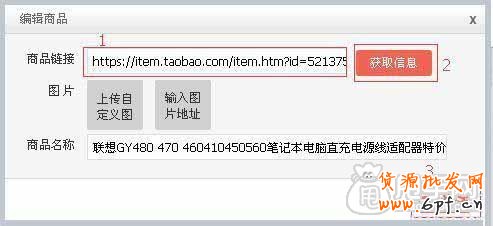10. 粘貼在編輯商品框的商品鏈接中,然后點擊獲取信息,商品名稱框中就會顯示對應商品的信息。最后確定。
