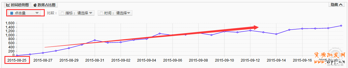 上圖為秋季寶貝的引流效果,可以看出寶貝前期預熱培養,引進的流量能帶來收藏及購物車數,直通車配合逐步提流,可以看出引進的流量與收藏及購物車數成正比發展,三個維度隨著推廣力度的逐步加大都呈現上升的趨勢。