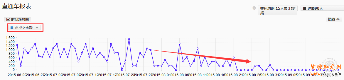 從上圖可以看出,該款夏季寶貝在過去90天的推廣期間,ROI=4.12,引進的流量促進的總成交金額在8月,也就是在夏季末開始呈現下滑的趨勢。