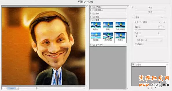 11、將所有圖層合并,點(diǎn)擊菜單:濾鏡 > 濾鏡庫 > 紋理 > 紋理化,參數(shù)如下圖。