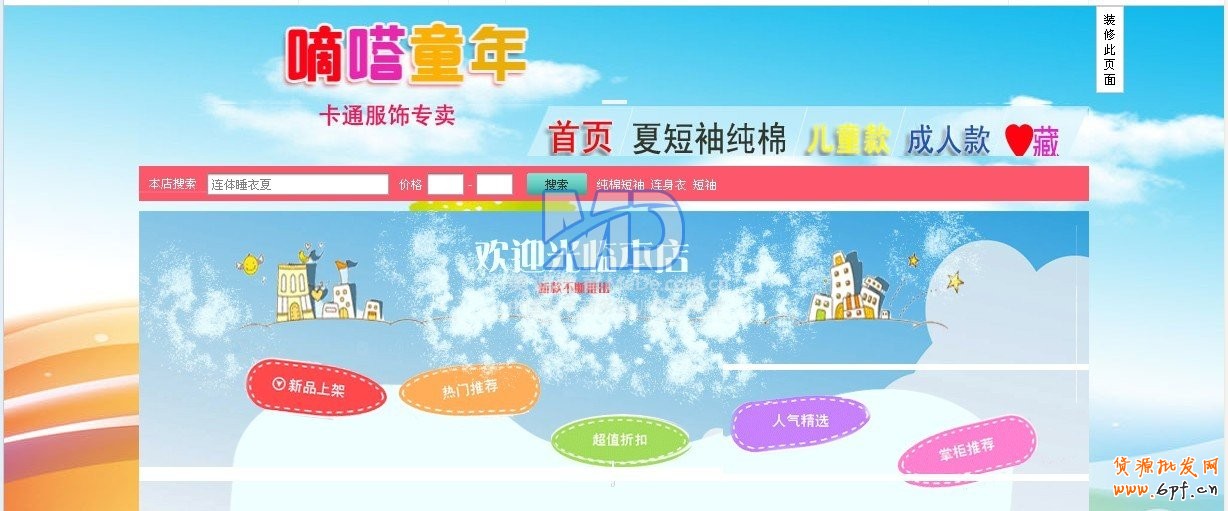 1.自己找一張或者是用PS制作一張背景圖, 圖片色彩最好跟店鋪風格一致或者呈現相應的節日氣氛的圖片,寬度建議1500px以上。因為現在很多電腦都是寬屏的,如果太小了,兩邊會出現本來背景的填充,根據這個店鋪是賣卡通服飾,并且在夏天,所以我找了色彩亮一點的圖片,把它另存為1。