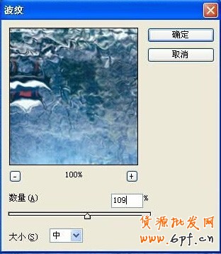 接著我們對背景圖的副本執行菜單欄的“濾鏡--扭曲--波紋”命令,用此來體現波紋動態,具體設置我們可以參考下圖所示;