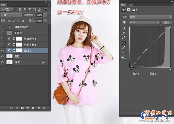 用曲線提亮,在暗的地方加一點對比!