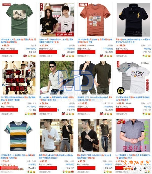 如果說你有去親自去搜索過淘寶你想要的產品話,那你就要想想在一大堆產品里面吸引你去點擊的主圖是什么樣的,這里舉個例子吧。比如樓主我是做男裝的,我親自去搜索一下,男裝T恤,然后你就會發現下面這種情況。