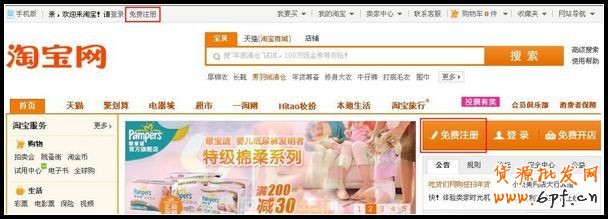 第一步:打開(kāi)淘寶網(wǎng),點(diǎn)擊“免費(fèi)注冊(cè)”