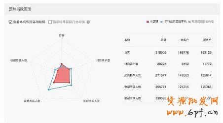 上圖中,紅色的區域就是我們自己店鋪的各項指標得分,藍色的線條就是同層級同行業賣家的得分。如果我們一直在流量方面遠低于同行,那說明我們在流量獲取上面落后了,找到錯誤,再進一步分析是新客還是老客流量出現問題,這樣才能制定后續的應對策略。通過這個圖我們還可以查看最近引導客戶加購物車有禮的活動反饋,同時與同行進行比較。