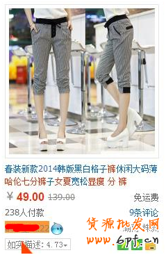 大家看下,標題的紅色字體,我知道這款肯定會火,截圖保留給大家,這個做的第一個詞,時間是2014年-04-02開始做的。當時的的銷量是8,接下來是第二個選詞了選的第二個詞是:哈倫七分褲 女 夏 顯瘦。這個詞是2014年-04-11號開始做的,下面是選詞做時的截圖: