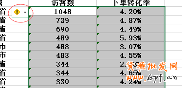首先看第一張圖,不知道大家發現有什么跟平時看到的數據源有什么不同沒有,可能很多細心的朋友已經發現了,就是所有數字的單元格左上角都有一個綠色的小三角。這個小三角是什么含義呢,小三角的含義是,單元格里面不管是什么樣的一個內容,不管是數據也好,百分數也好,它存儲的一個邏輯是文本的一個形式,簡單來說就是跟漢字是一樣的,我們數字的話,他有大小,有比較,能夠進行一些算法,但是如果說是漢字的一個相加,就完全沒有一個邏輯了,比方說,四川省和遼寧省不能進行一個邏輯上的相加。所以要使得數字變成真正的數值。選擇中這一片要轉換的區域之后,這片區域的左上角會有一個黃色的小標,