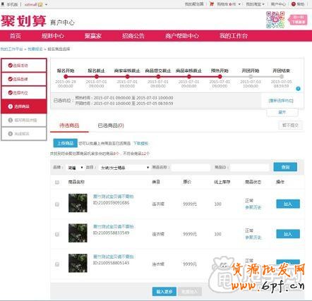 2.在待選商品列表,商家可以點擊“加入”選擇需要參聚的商品(品牌團報名時提交爆款商品將提升通過率);