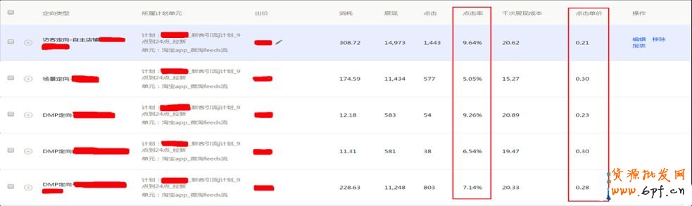 可以看到商家采用的訪客里自主添加店鋪定向、場景定向以及DMP的定向,其中訪客定向與DMP定向點擊率更是在6%-9%之間,點擊單價在0.2-0.3元之間。