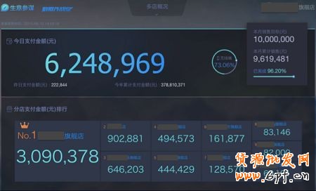 2、單店概況屏:實(shí)時展現(xiàn)店鋪核心數(shù)據(jù),店鋪經(jīng)營好壞一目了然;