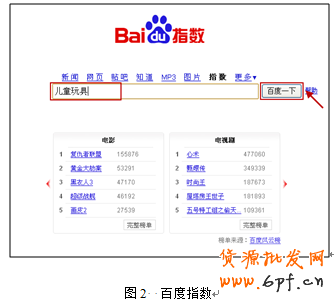 現(xiàn)在就打開【百度指數(shù)】首頁,在搜索欄中,輸入你網(wǎng)站的主要目標(biāo)關(guān)鍵詞“兒童玩具”,如圖2所示,單擊“百度一下”按鈕。