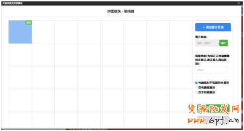后臺設置布局,每個圖片對應1個url,最多添加4個拼圖模塊,每個樓層最多20張圖,每張圖片有大小限制,請注意!