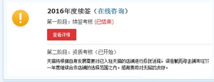 淘寶天貓開店的賣家爆料,稱已在淘寶天貓開店多年,本來要申請續簽2016年的天貓經營權,已經通過了第一階段的考核,卻在第二階段被告知審核不通過,要轉淘寶企業店鋪。前幾年的續簽正常情況下,在第一階段審核通過后,天貓需要商家提供資料進行續簽第二階段考核,如果資料不合格便拒絕續簽,而現在的情況是天貓不開放提交資料的入口,便直接拒絕續簽了。這也意味著,今年年底,與天貓現有合同結束之后,這些淘寶天貓開店的賣家要么關閉天貓店鋪,要么轉平臺,做淘寶企業店鋪。
