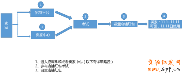 2015年淘寶雙十一活動(dòng)中,賣家設(shè)置淘寶雙十一店鋪紅包的流程如下:
