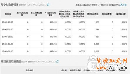 本次活動開團期間每天的數據對比以及本次活動與上次同類型活動同時段的累計數據對比,分小時的交易明細,商品的交易明細;