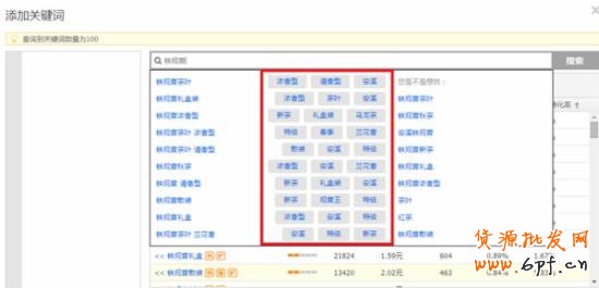 3. 手機端下拉詞表,右側的屬性詞,也是專屬無線端的屬性詞。在直通車里添加關鍵詞顯示的下拉詞表和手機端是一樣的。