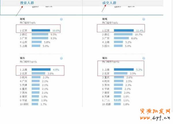 根據搜索人群分布與購買人群分布我們大致可以看出來購買的地域分布,在寫標題的時候也可以側重下,更重要的是在廣告投入的時候可以分區域投入。