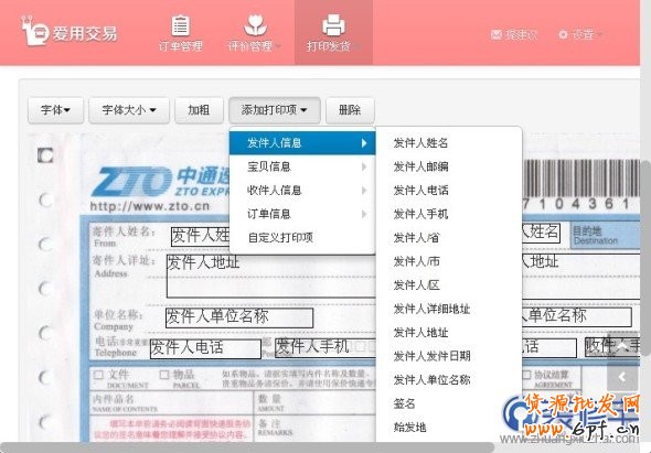添加新模板:調(diào)整快遞單的模板格式(可選),系統(tǒng)中已有默認格式,如果不能滿足要求,可以增加、修改、刪除、調(diào)整現(xiàn)有的打印項
