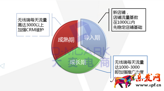 1、導入期:店鋪的流量較少,在這個時期,往往不會貿然加大流量。所以把重心放在抓轉化上面,主要的工作是詳情頁面裝修、首頁裝修、必要的時候還要PC流量導入。引導一些有無線購物習慣的流量去轉化。