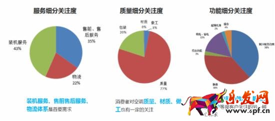 這個圖很清楚的揭示了買家的需求,服務是買家對家用中央空調的需求中最為看重的,其次是質量和功能。