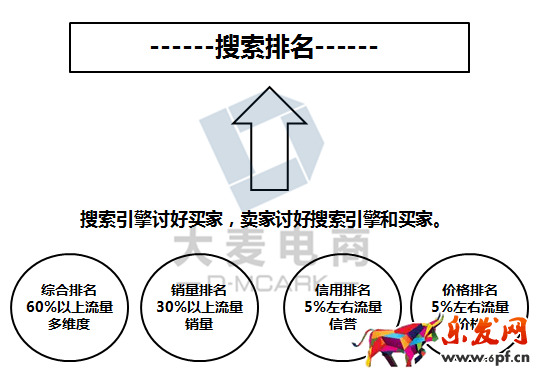 從上圖看到,綜合排名是占比了60%以上的流量,銷量排名占比了30%以上的流量,信用排名占比了5%左右的流量,價(jià)格排名占比了5%的流量,定制這個(gè)搜索引擎出來,平臺是為了討好買家,讓買家覺得平臺好,服務(wù)好,搜索人性化,同時(shí)平臺的搜索規(guī)則也做就了商家怎么運(yùn)營,所以商家是為了討好搜索引擎和買家而且做運(yùn)營,最終得出來的結(jié)果就是,搜索排名的優(yōu)化策略。