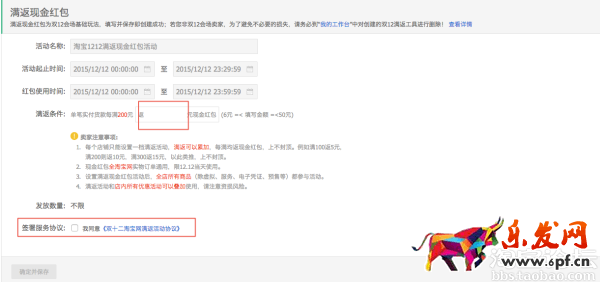 第二步:報名雙十二淘寶網活動,滿返的設置會在報名商品的時候自動引導您填寫。