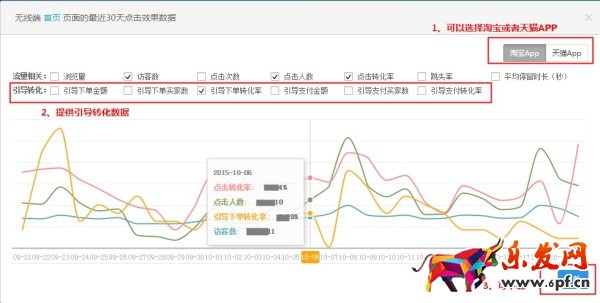 無線端頁面數據,提供最近30天點擊效果數據及趨勢對比。