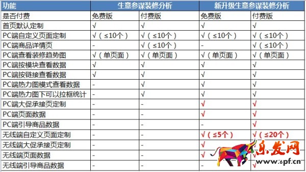 答:原裝修分析只有PC端的點擊分析熱力圖和定制商品詳情頁的功能,新升級的裝修分析不僅新增了無線端的裝修分析,還新增了頁面引導轉化數據,讓你可以更全面的查看裝修效果數據。所以,裝修分析價格調整為100元/月,260元/季,480元/半年,840元/年。已經訂購裝修分析的用戶,只要還在服務期內都可以原價享用升級版裝修分析!