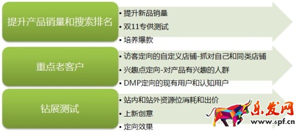 目的:通過測款確定雙11主推產品,并通過定向投放老客戶,同時完成資源位選擇、創意和落地頁及定向測試,鎖定效果較好的資源位、創意內容和定向。