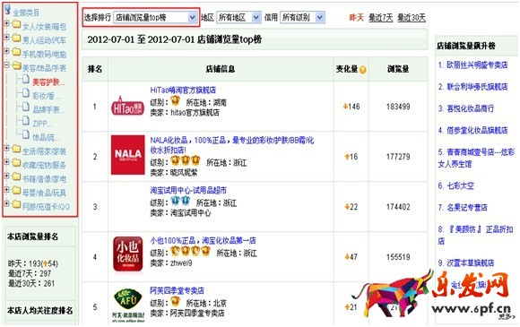 通過量子恒道排行榜找到行業內以及相關行業內近7天店鋪瀏覽量和寶貝瀏覽量高的店鋪作為自己定向的目標店鋪。