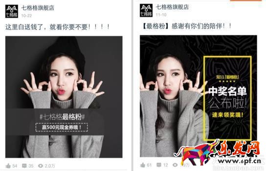 本來我們是打算完全承載在微淘,但是因為官方取消了曬圖功能,所以我們只能將微淘作為一個活動告知,而將曬圖轉移至微博#雙11最格粉#,最終參與人過百,投票數近萬,在充斥著利益一切為了銷售的雙11里面,增加溫情的互動,反而會有更好得反響,我們不僅賣貨,我們還是朋友,更能拉近粉絲關系。