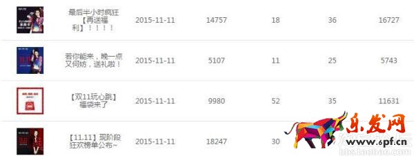通常下午是無線的疲軟期,所以我們追加福袋活動,3件99元刺激買家。晚上9點則是通過發雙11快訊再此推倒計時活動,滿300送300,借助官方快訊,擴大曝光。