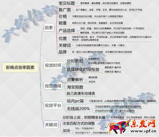 大家看,直接影響點擊率的因素就是這些,其他一些個別因素、不受直接控制的因素沒有標明,因為都是要長時間來體現的出效果的,上面這幾點做好了,相信你肯定可以將直通車效果提升起來!