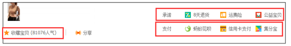 (4)承諾、收藏、DSR評分、店鋪信譽、支付方式等