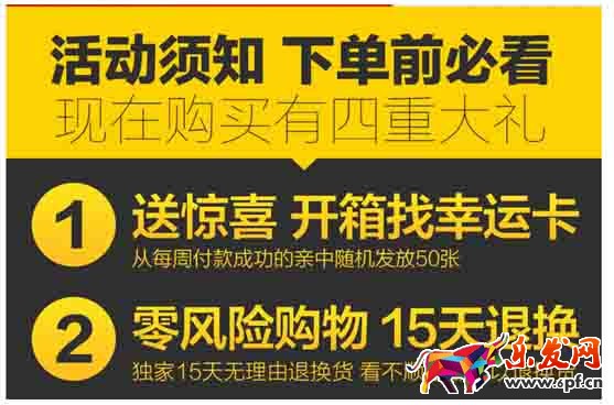 吸引住消費者的眼球后,讓買家對你的寶貝感興趣。這個感興趣一般情況下可以是寶貝獨特的賣點,也可以是一些有吸引力的活動,目的是讓消費者有進(jìn)一步讀下去的欲望,并且產(chǎn)生購買興趣。比如下面的內(nèi)容: