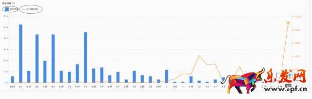 大家看下面這張圖,這里一共有3個(gè)軸,左邊這個(gè)軸是從0到60,下面這個(gè)軸是從0.05到2.7,右邊這個(gè)軸是從0到10000。那么我們來(lái)對(duì)應(yīng)一下。這個(gè)0-10000指的是什么呢,這是一個(gè)平均的展現(xiàn)數(shù)量,0.05到2.7這個(gè)代表平均出價(jià),大家注意一點(diǎn)。這里的出價(jià)并不代表排名。我們可以發(fā)現(xiàn),出價(jià)2.7的寶貝只有一個(gè),他獲得的平均展現(xiàn)是9090。這意味著,出2.7大概9090展現(xiàn),寶貝數(shù)量1個(gè),那就是沒(méi)有商家和他競(jìng)爭(zhēng)。但換過(guò)來(lái),假如我出價(jià)1.15,1.15這樣的一個(gè)展現(xiàn),再考慮上競(jìng)爭(zhēng)的商家數(shù)量,我可以估算出我出價(jià)1.15會(huì)有多少的展現(xiàn)量,或者說(shuō)根據(jù)這個(gè)我們?nèi)フ{(diào)整自己的出價(jià)就會(huì)有不一樣的結(jié)果。而反過(guò)來(lái)。如果我們保持2.7價(jià)格一直不去動(dòng)它反而展現(xiàn)量會(huì)下降。所以說(shuō)不一定是出價(jià)越高效果就越好,出價(jià)越低效果就差。