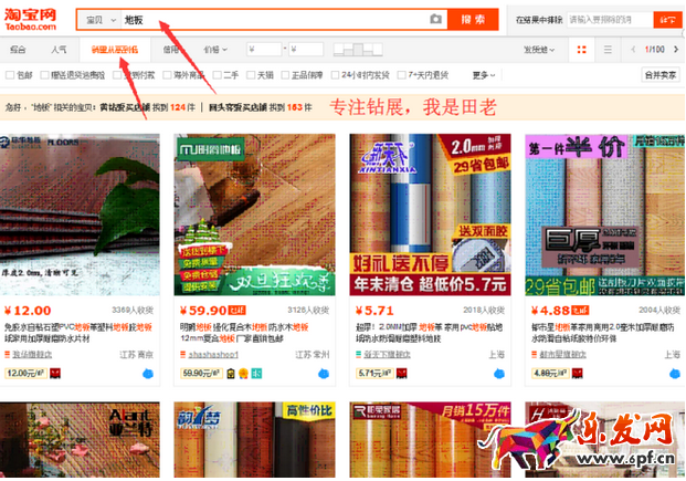 首先分析了行業(yè)、競品、產(chǎn)品基礎知識,地板分為實木地板、復合地板、實木復合地板,主打復合地板。行業(yè)有銷量的賣家沒多少。因為這個行業(yè)價格和品類區(qū)別了人群,除了訪客定向外,其他定向都做不到區(qū)分價格和葉子類目,所以做訪客定向。因為這個單品客單價很高,所以適合做PC電腦端的資源位。電腦端的資源位以淘寶首焦為最佳。因為這個類目是標類,產(chǎn)品和產(chǎn)品的差異很小,所以女裝等諸多找店方法失效,決定找出來所有地板類目賣得好的商家一個一個測試。淘寶搜索框關鍵詞搜索最大詞:地板。