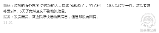 對于這種不太好的評價,雖然不是直指寶貝質量方面的問題,但也體現了物流方面的問題,對于此類問題,賣家應做好及時的解釋以及回復,避免其他買家看后體現度下降。