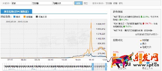 同樣使用淘寶指數,對商品關鍵詞進行搜索指數分析,搜索指數飄紅證明商品受歡迎。根據搜索指數決定要推的款式,具有一定的參考價值。