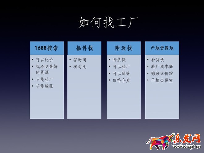 4、產地貨源地:補貨慢、驗廠成本高、賒賬比價難、價格會便宜