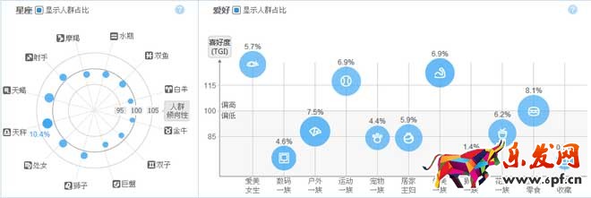 從上圖可以知道喜歡毛呢外套女人群都有那些愛好跟星座,星座剛才也說了,我們說一下愛好,