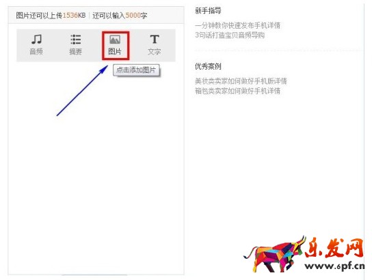 這種方法設置的路徑會有些不一樣,在“我要賣”--“發布商品”,選擇無線端后“添加圖片”