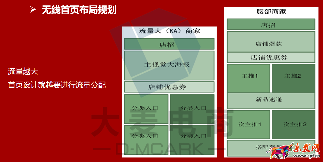 第三個就是二級頁。無線端的因為頁面展示的限制,頁面模塊是有限的。如何能夠展現更多的商品,只能夠通過二級頁的拓展。而二級頁面的邏輯,以及閉環的優化,是二級頁裝修里面要側重的點。