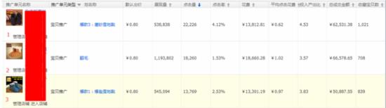 分析:目前直通車推廣這3款寶貝,但是寶貝2的點擊率是明顯較低的,ppc也是較高于其他2款寶貝的,同時此款寶貝相比其他2款寶貝點擊率低的一個原因是:此寶貝的一個成交筆數上是亞于其余2款寶貝的。