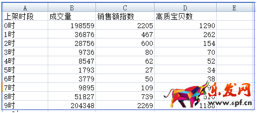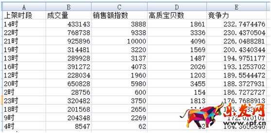 按理說,找成交量最高的時間段上架是最好的了。但是賣家還要注意成交量高,如果高質寶貝數也多呢?那就說明競爭很激烈,所以我們在這里還是要計算一下競爭力,找競爭力最強的時間段,意思就是單個高質寶貝可以分到的成交量越大,越好。